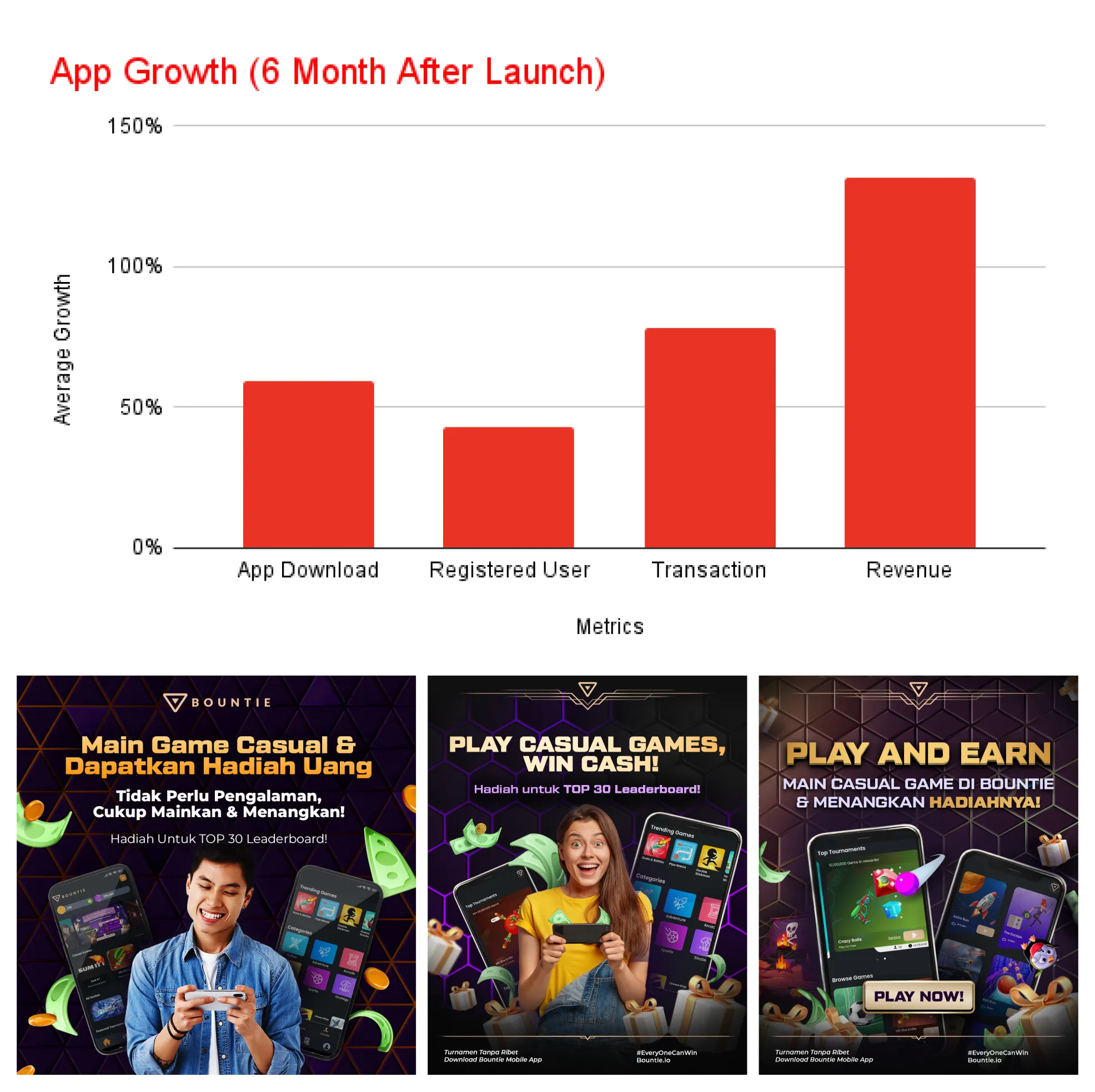 By improving conversion rates and decreasing CPA, I was able to achieve a lowest CPA of IDR 1,400 with a 7% CTR. I successfully brought in 60K downloads and increased this number by up to 50% monthly, while also increasing the conversion rate to 30%. Working closely with tournament teams, I created various app promotions that resulted in a 100% revenue increase during the Feb-March 2023 period.